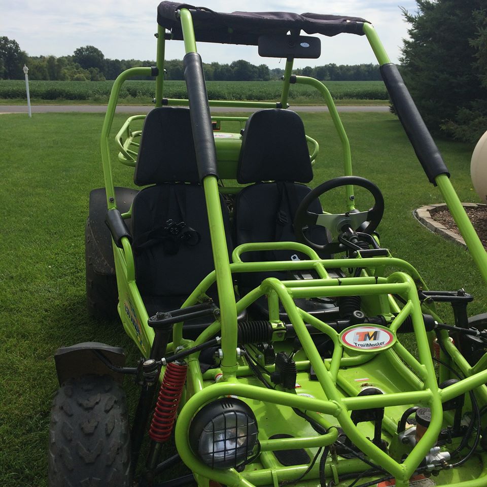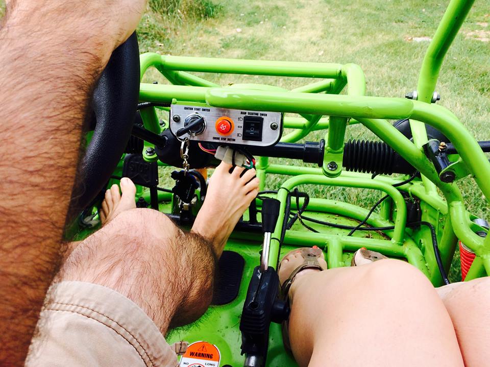 Growing up he and I saved our money to buy a go kart. It was red and had a bright orange safety flag—my favorite feature as a kid—that flapped in the breeze the faster we went. We lived in a subdivision, and I know we didn’t go too terribly fast. It felt great as a kid. Keep in mind, it has been a few years since I’ve plopped myself down in anything that resembles a kart. My brother has gone big on the karting action. He and his boys have a big, lime green dune buggy.